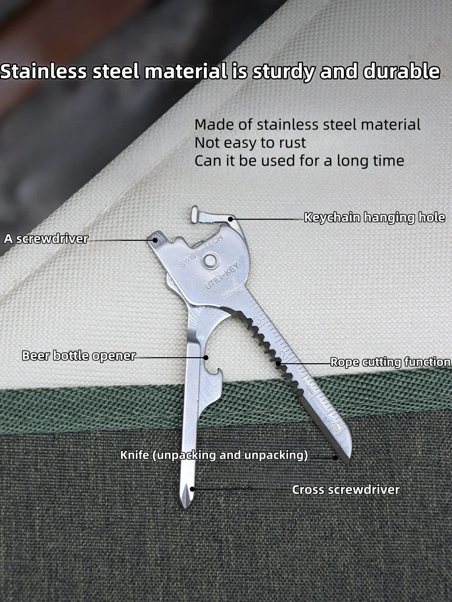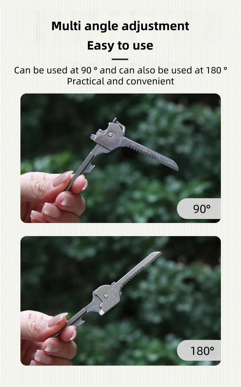 Cet outil pliant multifonction 6 en 1 regroupe un ouvre-porte, un porte-clés, un tournevis et une pince de poche, idéal pour les activités en plein air, la survie et les interventions de sauvetage. Compact et pratique, il combine plusieurs fonctions essentielles dans un seul accessoire portable sans composant électrique, offrant une solution fiable et polyvalente au quotidien.