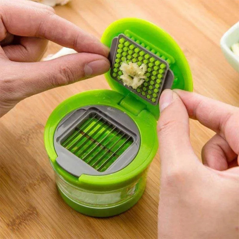 1 pièces hachoir à ail en plastique + acier inoxydable presse à ail multifonctionnelle Machine à purée au gingembre coupe-ail vert CP139