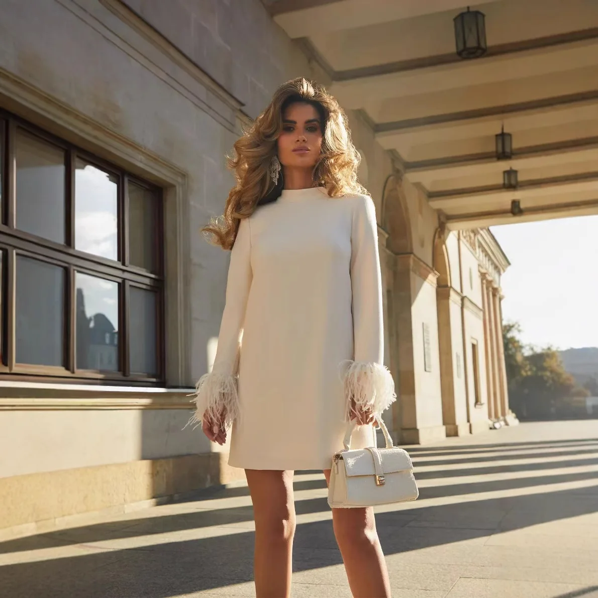 Robe courte moulante à manches longues pour femme