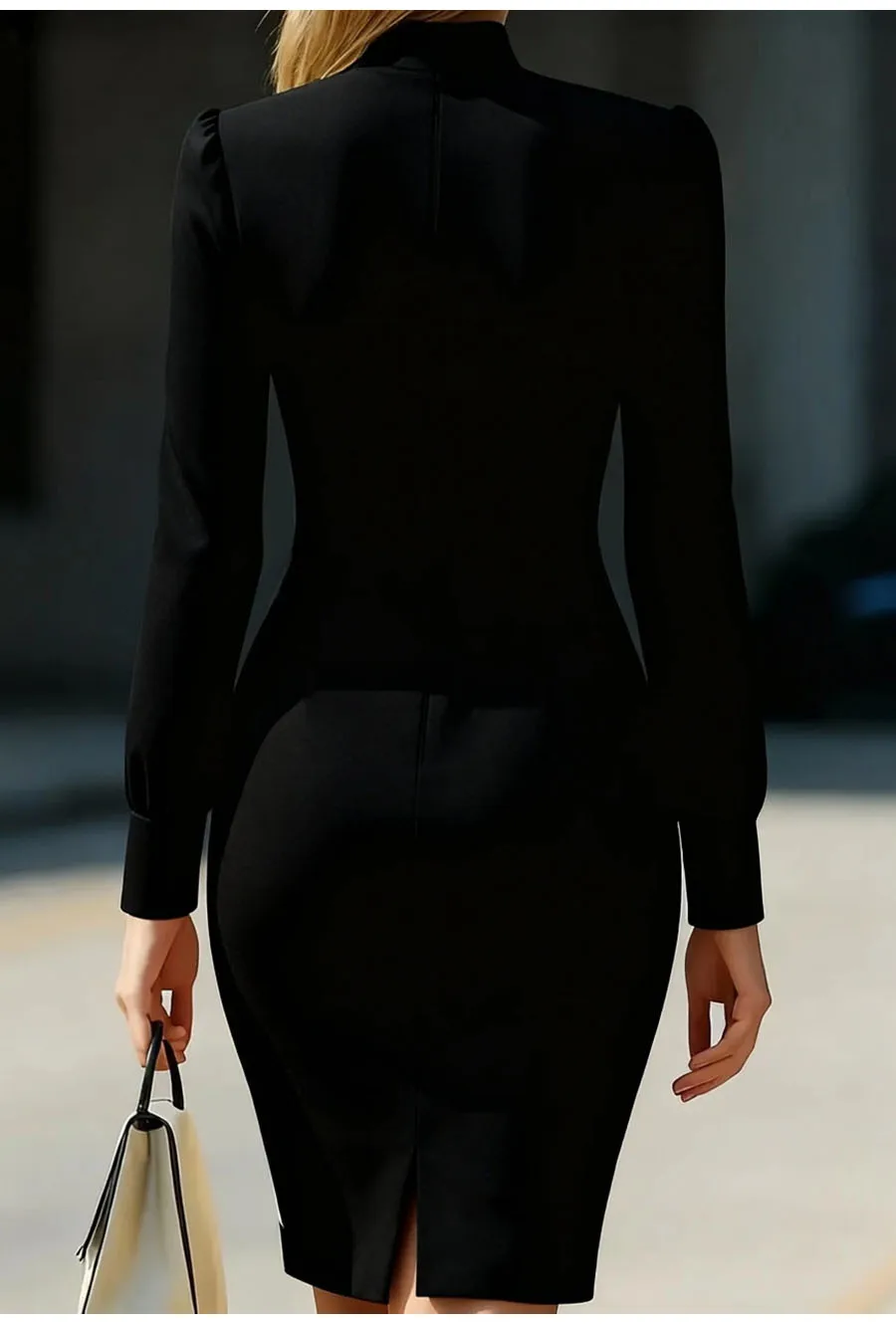 Robe mi-longue moulante pour femmes, mode soirée, col haut, manches longues, Slim, élégante, automne hiver 2025